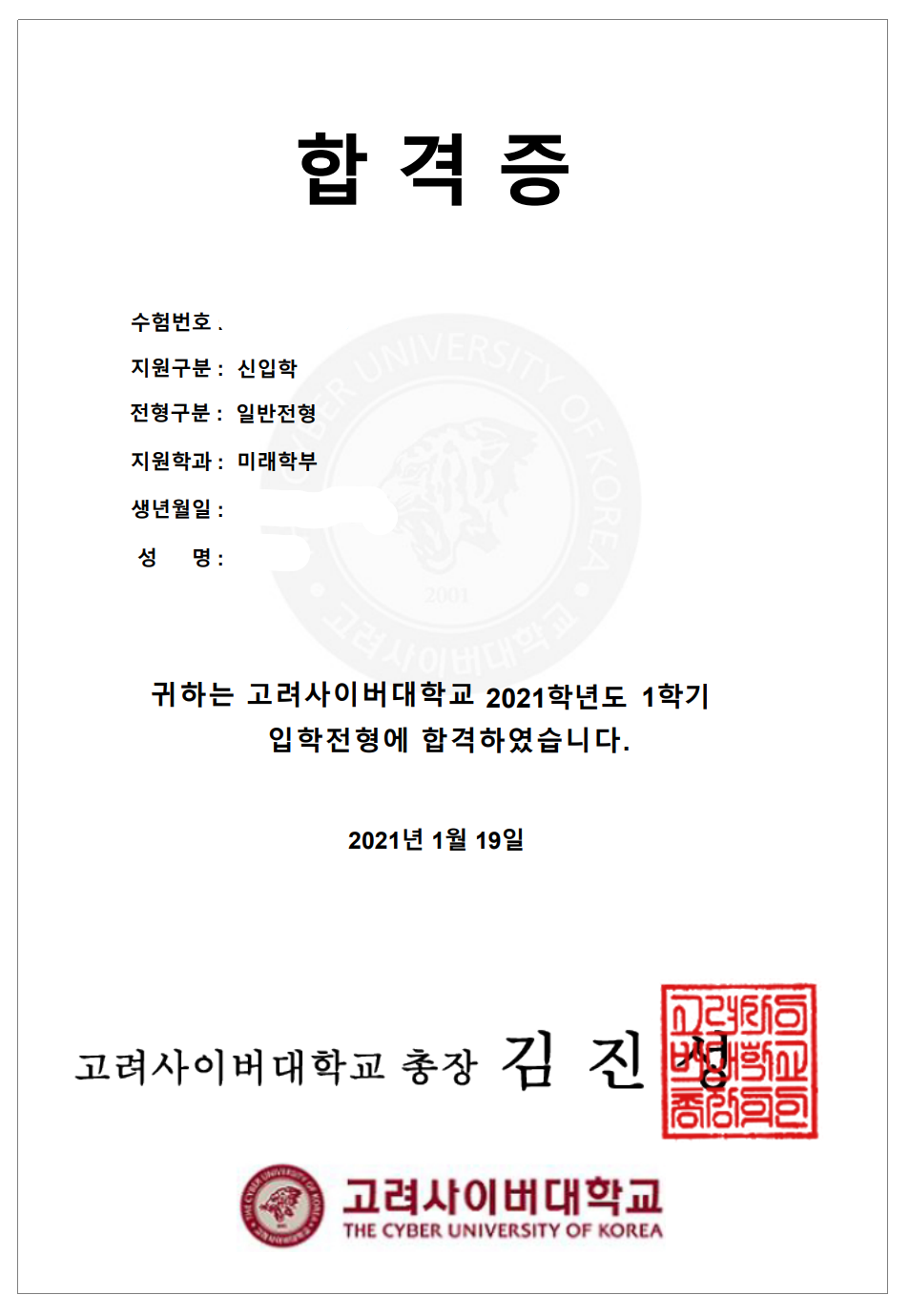 그리하여 나는 2021년 다시 대학 신입생이 되었다. 고려사이버대학교 미래학부 빅데이터 전공 학생이 된 것이다.